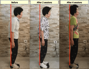 Nous devons relâcher la tension chronique des muscles de la surface des muscles au plus profond de l’intérieur pour éviter une situation de «retour» ou une tension supplémentaire. Nous sommes en mesure de confirmer le résultat de sa relaxation musculaire en observant la posture ainsi que la différence de taille avant et après le traitement.